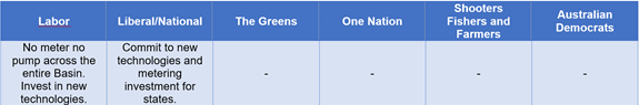 The National Farmers Federation have provided a policy comparison tracker for the Liberal, Labor and Greens policies by theme. This is a great tool when comparing positions on a range of agricultural and regional issues, highlighting significant differences and gaps and is available here.
