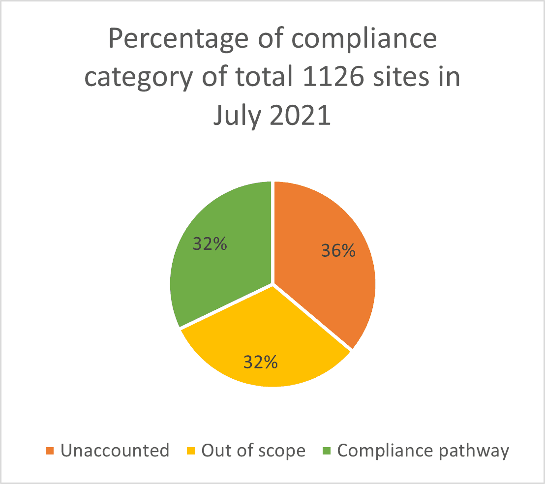 “From compliance reporting by the Natural Resources Access Regulator (displayed above), we know there were 1126 sites[2] that needed to meet the first deadline (Chart 1), yet about a third of these sites were no longer considered in-scope, these are now unlikely to need telemetry. A further third of these sites, NRAR could not contact because the database is so out of date and the status remains unaccounted”.